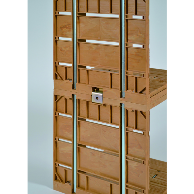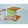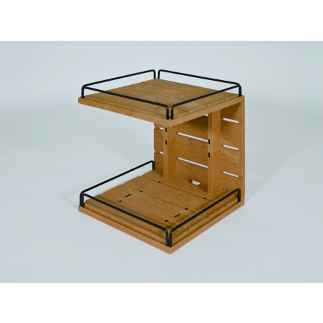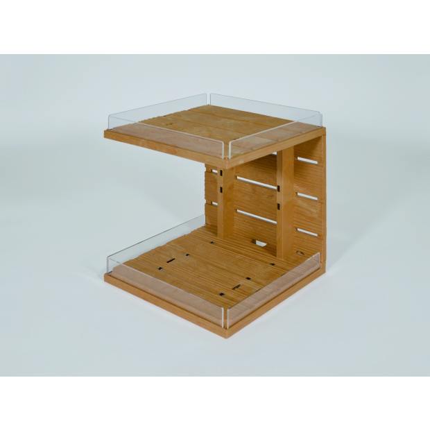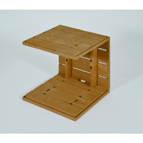 These simple C-shaped boxes can be stacked, lined up or set facing each other to provide a variety of displays depending on how they are set and used.